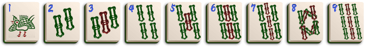 A játékkészlet összesen 144 kőből áll, amiket 7 csoportba lehet osztani. 5 csoport (Kör, Bambusz, Írás, Szél, Sárkány) minden kövéből 4-4 egyforma van. Az Évszakok és Virágok csoport köveiből pedig 1-1.